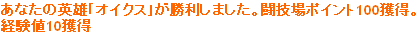 闘技場で勝った際にもらえる経験値はどうであろうか?